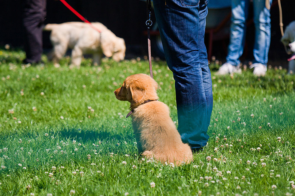 Die letzte Aktion des Tages sollte dann der Rückruf über ein Hindernis sein. Normalerweise handhaben wir das so, dass wir unsere Hunde bei Nicole auf der anderen Seite abgeben, die sie so lange festhält, bis wir sie rufen. Ich bat Nicole darum, die Übung dieses Mal ohne ihre Hilfe zu machen. Ich wollte Edison stattdessen mit Bleib absetzen und ihn dann zu mir rufen. Zu Hause üben wir das täglich, jedes Mal mit Erfolg. Ich wollte aber wissen, ob es auch unter anderen Umständen klappt. Ich ließ Edison also mit Sitz und Bleib warten und entfernte mich ca. 10m von ihm, um ihn dann von der anderen Seite zu mir zu rufen. Kurz nachdem ich das Hindernis jedoch an einer Seite umschifft hatte, lief er leider ohne meinen Pfiff los. :(( Schade, schade … Hunde sind eben keine Maschinen, dennoch war ich ganz schön enttäuscht kann ich euch sagen. Nicole meinte, die Entfernung sei vermutlich zu groß gewesen. Ich tippe eher auf die allgemeine Ablenkung, die ungewohnte Umgebung und/oder die schwindende Aufmerksamkeit am Ende einer Welpenstunde. Wir werden es beim nächsten Mal einfach wieder versuchen.